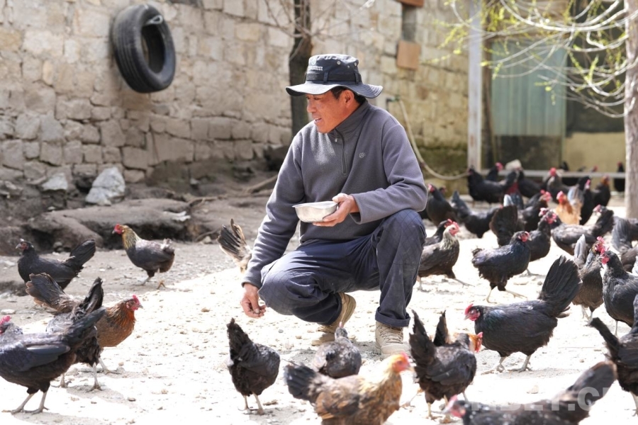In Rubinggang Village, Yadong County, Xigaze City, village Party secretary Tsering Loden has gradually become an expert in chicken farming. He led the establishment of a native chicken breeding cooperative, which gives priority to people who have recently been lifted out of poverty, persons with disabilities, and other local villagers, offering them employment opportunities and a share of profits. The cooperative has expanded from an initial scale of just over 3,000 chickens to more than 7,000 today, bringing in a stable annual income of 200,000 yuan for the village collective. In 2025, it distributed a total of 192,200 yuan in dividends to its members, providing support for stable income growth among residents.